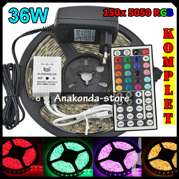 36W LED Traka 150-5050 RGB Cijeli Komplet 5m + Adapter + Daljinski 44 Tipke